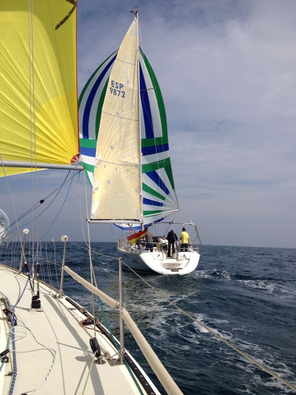 Quan sortia el primer, el vent ja havia començat a rolar cap a W, i apareixien les primeres ratxes que en ocasions s'aproximaven als 20 nusos. Però el maresme és el maresme, i altre cop en arribar entre el Balís i gairebé fins a Premià el vent es feia més fluix i inestable. Cap a migdia entrava un SW que duraria una estona, i que obligava a escollir estratègia a les embarcacions de la flota: bordo cap a terra? anar cap enfora? però poc a poc el vent anava rolant cap a W i pujant d'intensitat, ara si per sobre dels 20 nusos, obligant a la majoria a prendre rissos. I aquí ja començaren els primers abandonaments del dia: alguns per culpa del material, i altres simplement pel cansament, ja que les condicions de vent ratxejat i les rolades feien que la navegació fos força exigent.